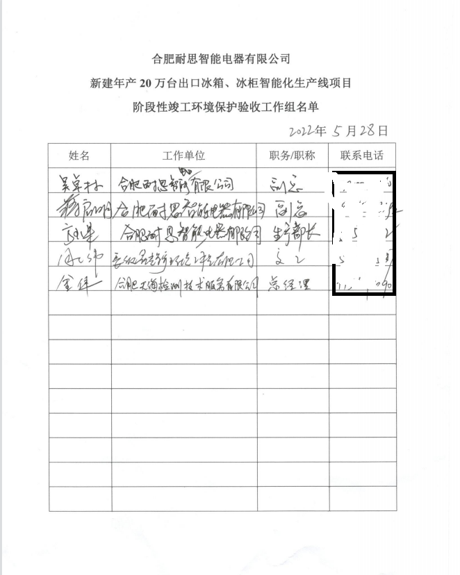 合肥耐思智能電器有限公司新建年產(chǎn)20萬臺出口冰箱、冰柜智能化生產(chǎn)線項目階段性竣工環(huán)境保護(hù)驗收報告公示