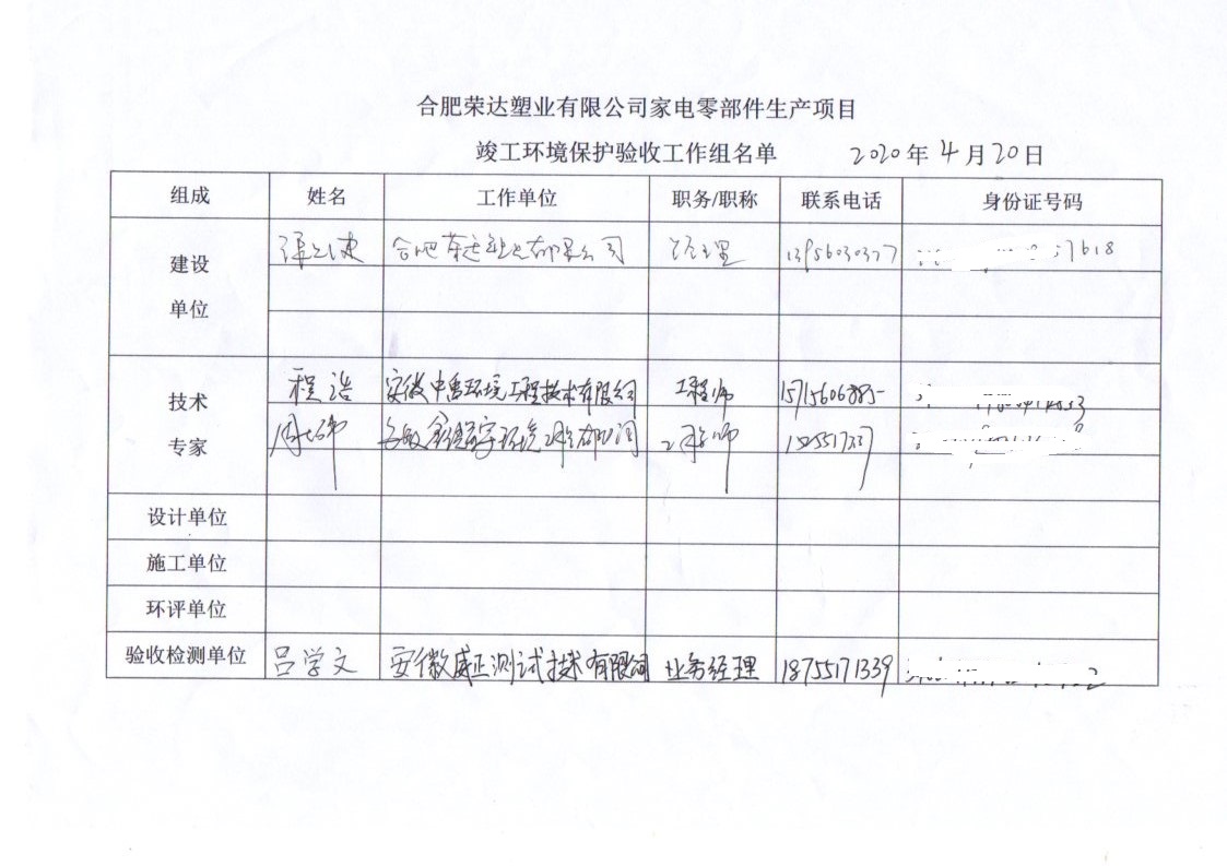合肥榮達塑業有限公司家電零部件生產項目驗收監測報告表.pdf