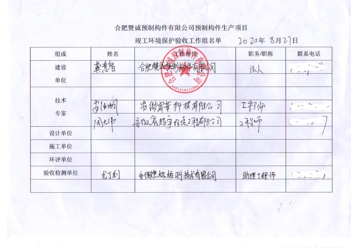 合肥贊誠預(yù)制構(gòu)件有限公司預(yù)制構(gòu)件生產(chǎn)項目驗收監(jiān)測報告表.pdf
