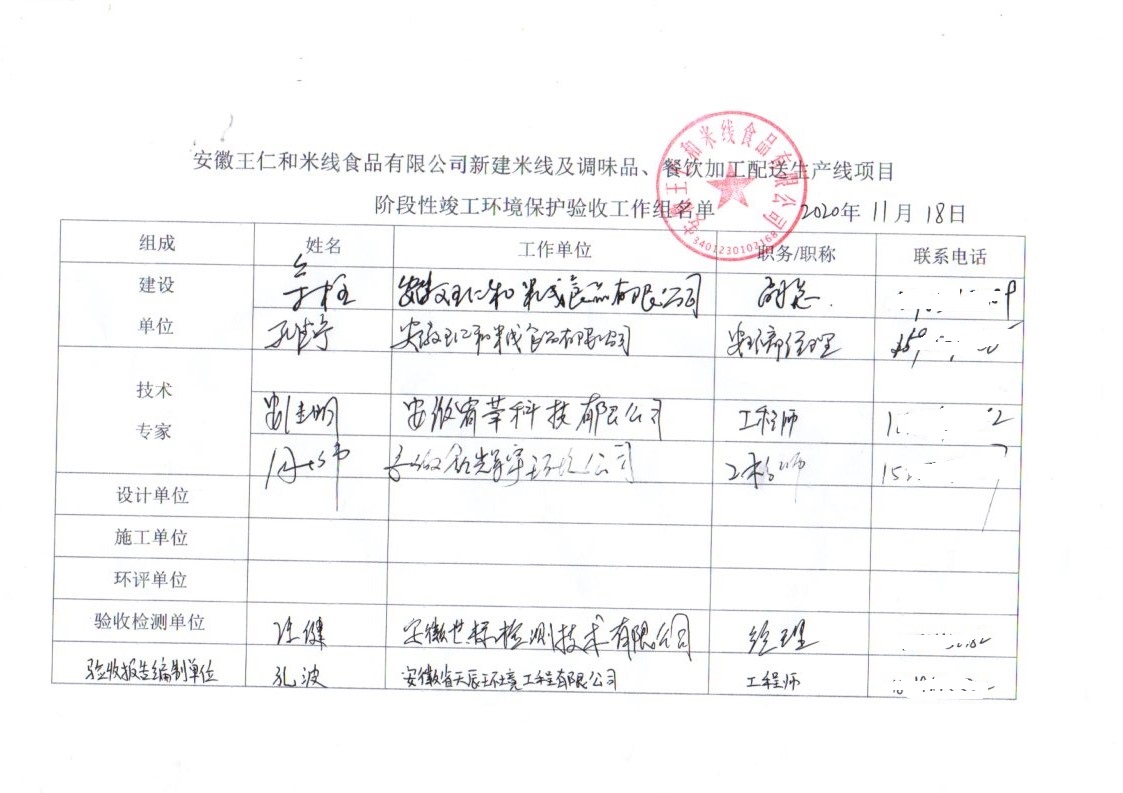 安徽王仁和米線食品有限公司新建米線及調味品、餐飲加工配送生產線項目階段性竣工環保驗收意見.pdf