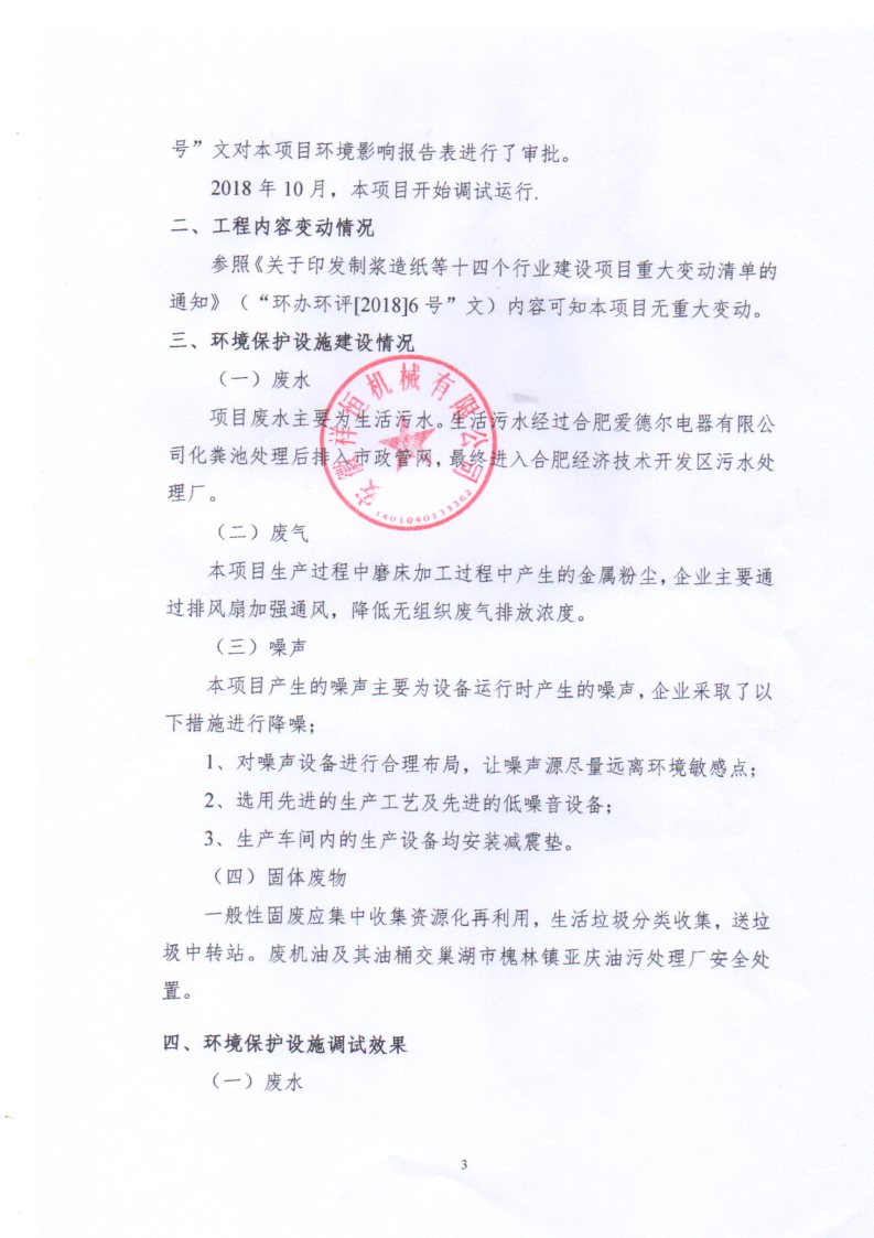 - 7 合肥海之森塑業(yè)有限公司年產1600萬件家電和汽車鈑金件及800萬件家電注塑件產品項目竣工環(huán)境保護驗收報告公示
