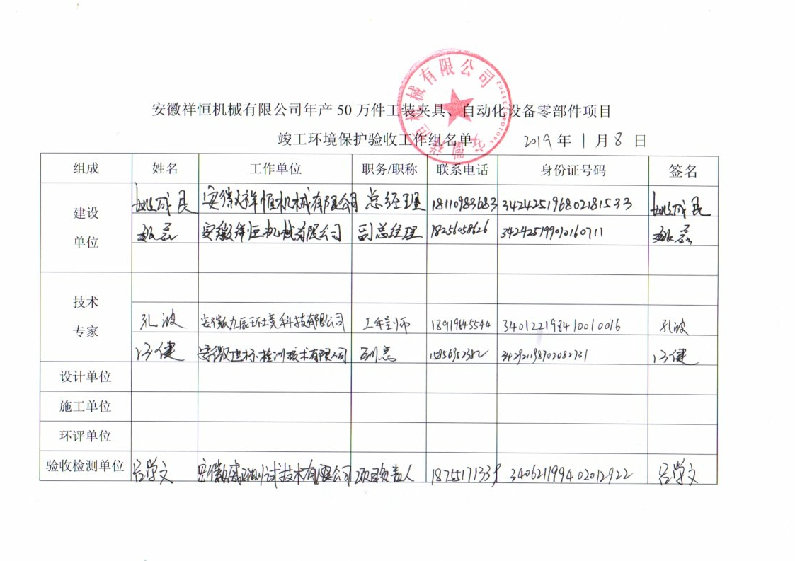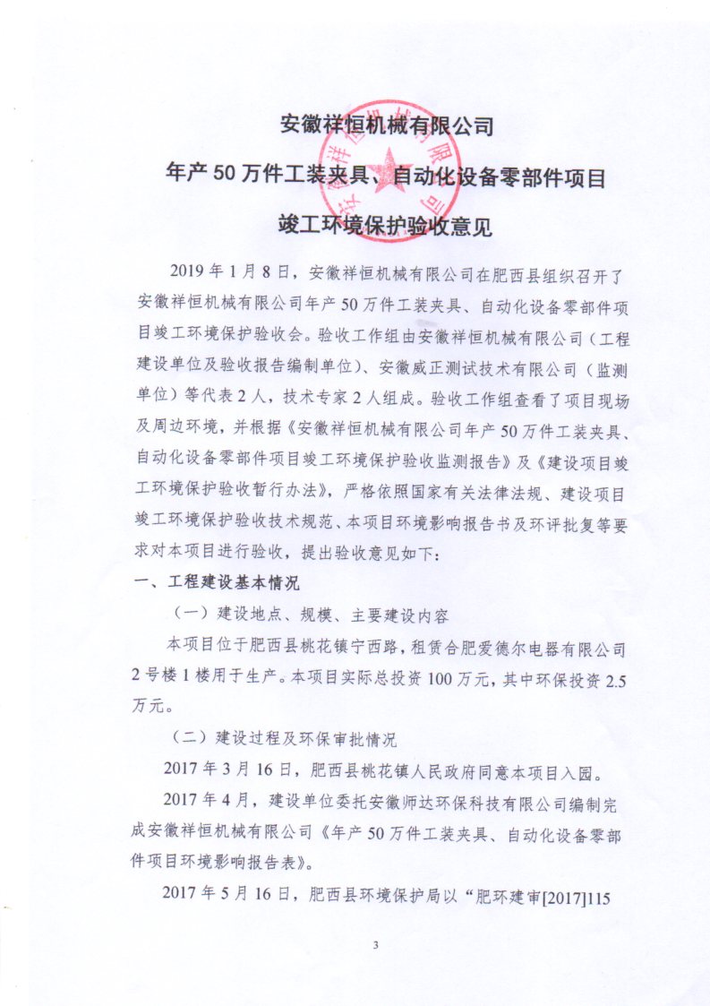 安徽祥恒機械有限公司年產50萬件工裝夾具、自動化設備零部件項目竣工驗收報告表.pdf
